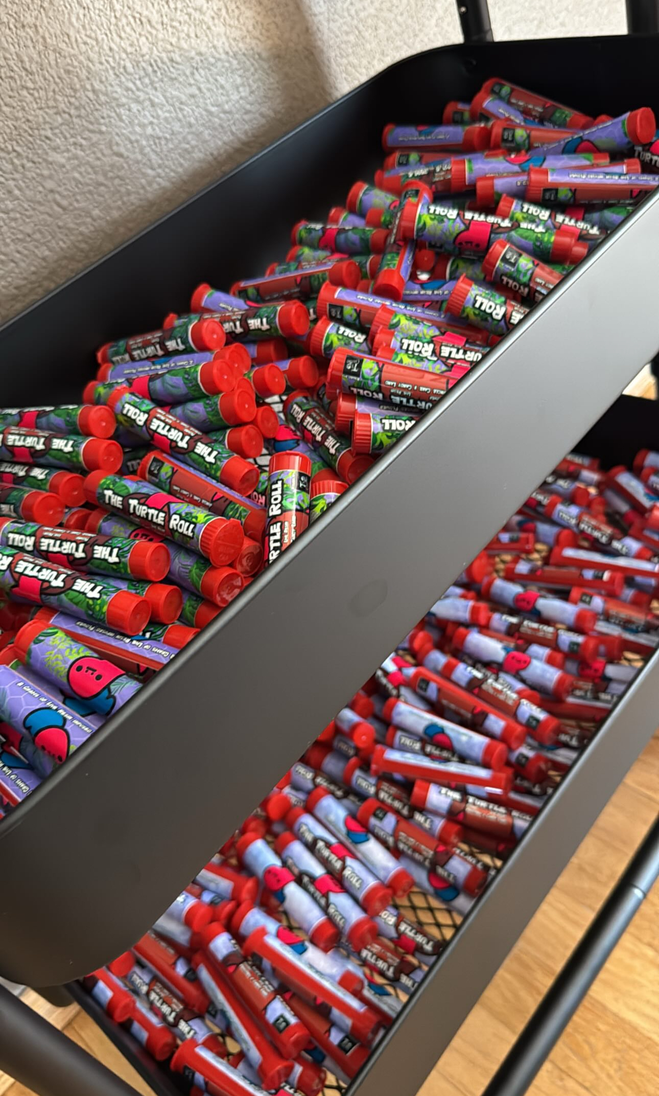 To maintain freshness, store TURTLE ROLL in a cool, dry place. Keeping it sealed helps preserve flavor and moisture balance.